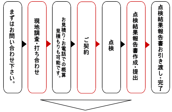 お客様のご都合に合わせ、当社の作業スタッフが現地までお伺いします。点検対象となる建物を確認し、事前の打ち合わせを行います。